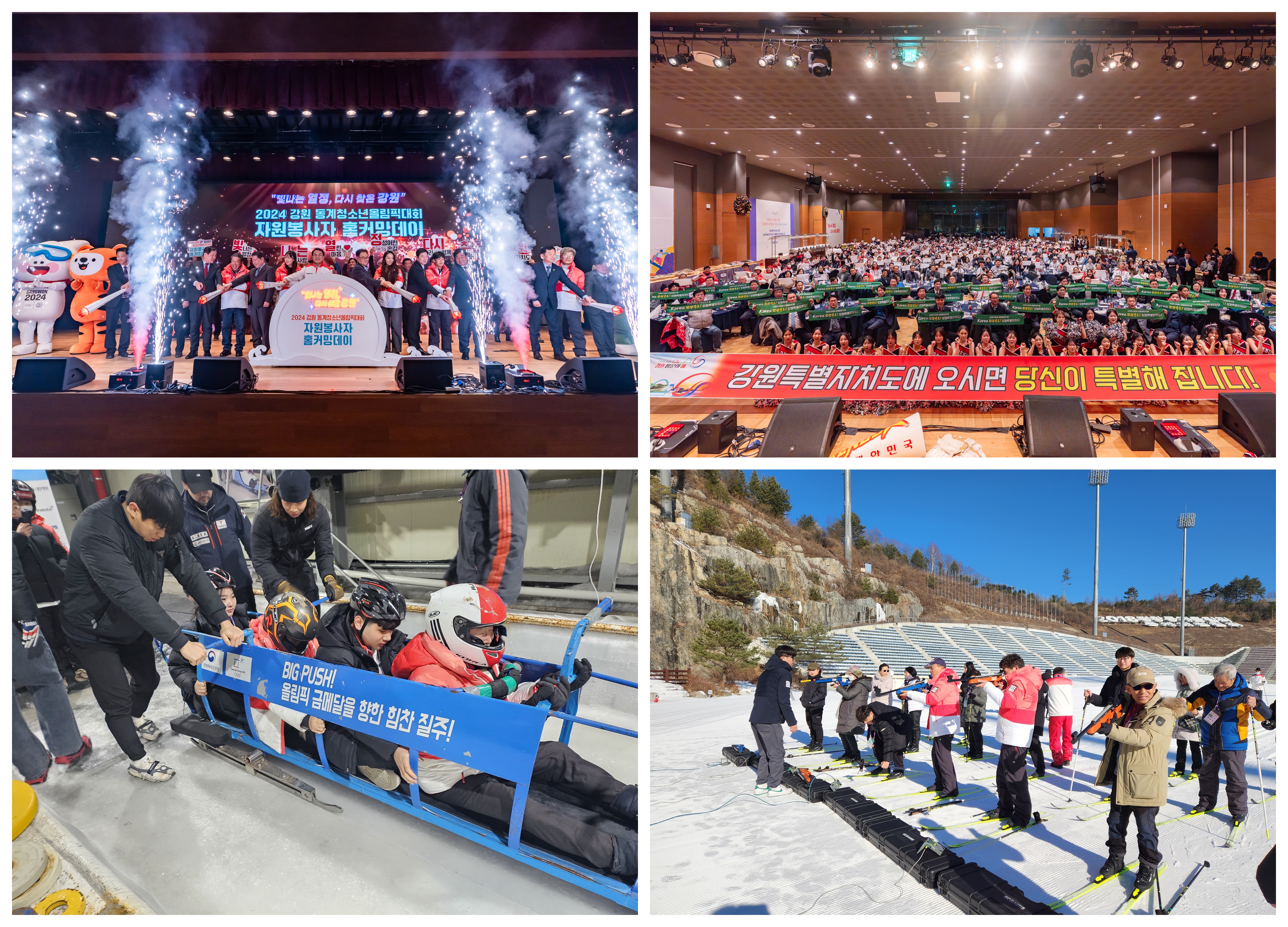 (사)강원특별자치도자원봉사센터(이사장 박광구)는 1월 22일 ~ 23일 이틀간 평창 모나용평리조트와 평창군 일대에서 김진태 강원도지사, 신경호 도교육감, 진종오 국회의원 등 내빈과 올림픽 참여 자원봉사자, 행사 운영인력 등 500여명이 참여한 가운데 「2024 강원 동계청소년올림픽대회 자원봉사자 홈커밍데이」를 개최하였다.