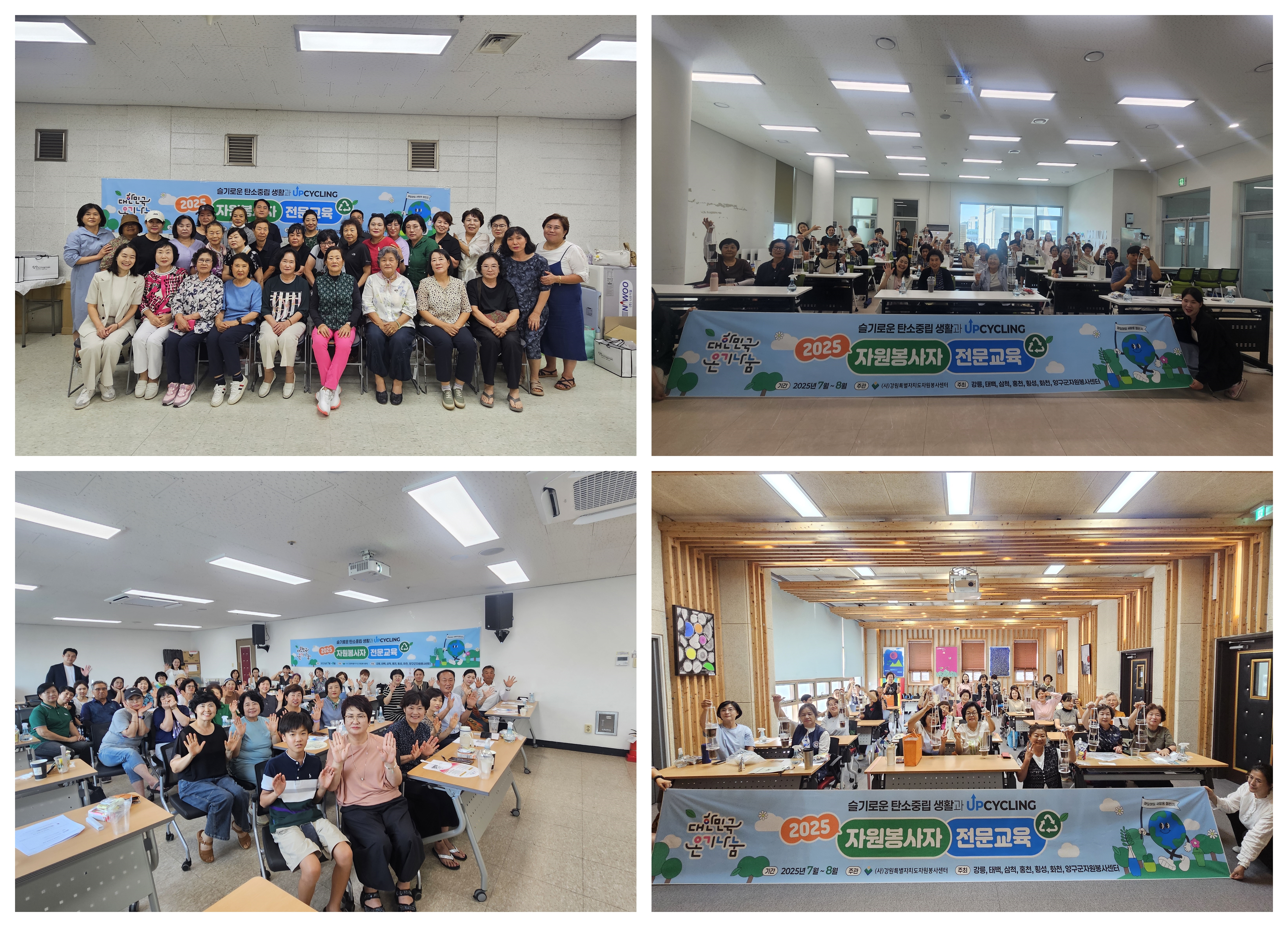 올해는 강릉, 태백, 삼척, 홍천, 횡성, 화천, 양구센터 대상으로 진행되며, 센터 자원봉사자 각 30명(총210명)을 대상으로 「슬기로운 탄소중립생활과 업사이클링」을 주제로 이론 교육과 함께 실생활에서 적용할 수 있는 실습으로 구성되었다.
