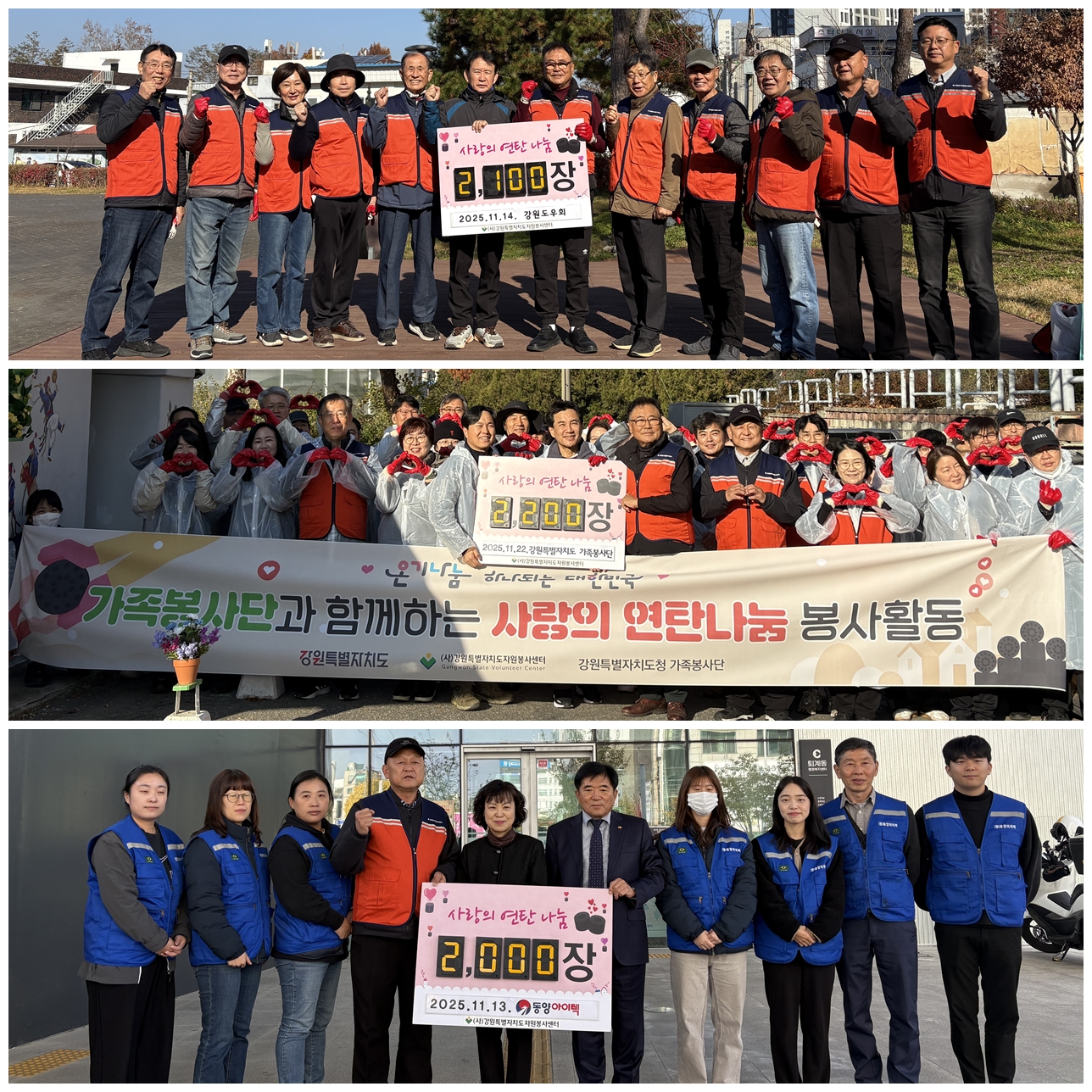 (사)강원특별자치도자원봉사센터는 (합)동양아이텍, 강원도우회, 도청 가족봉사단 등의 기부를 통해 사랑의 연탄 6,300여 장을 관내 에너지 취약계층에 전달했다.