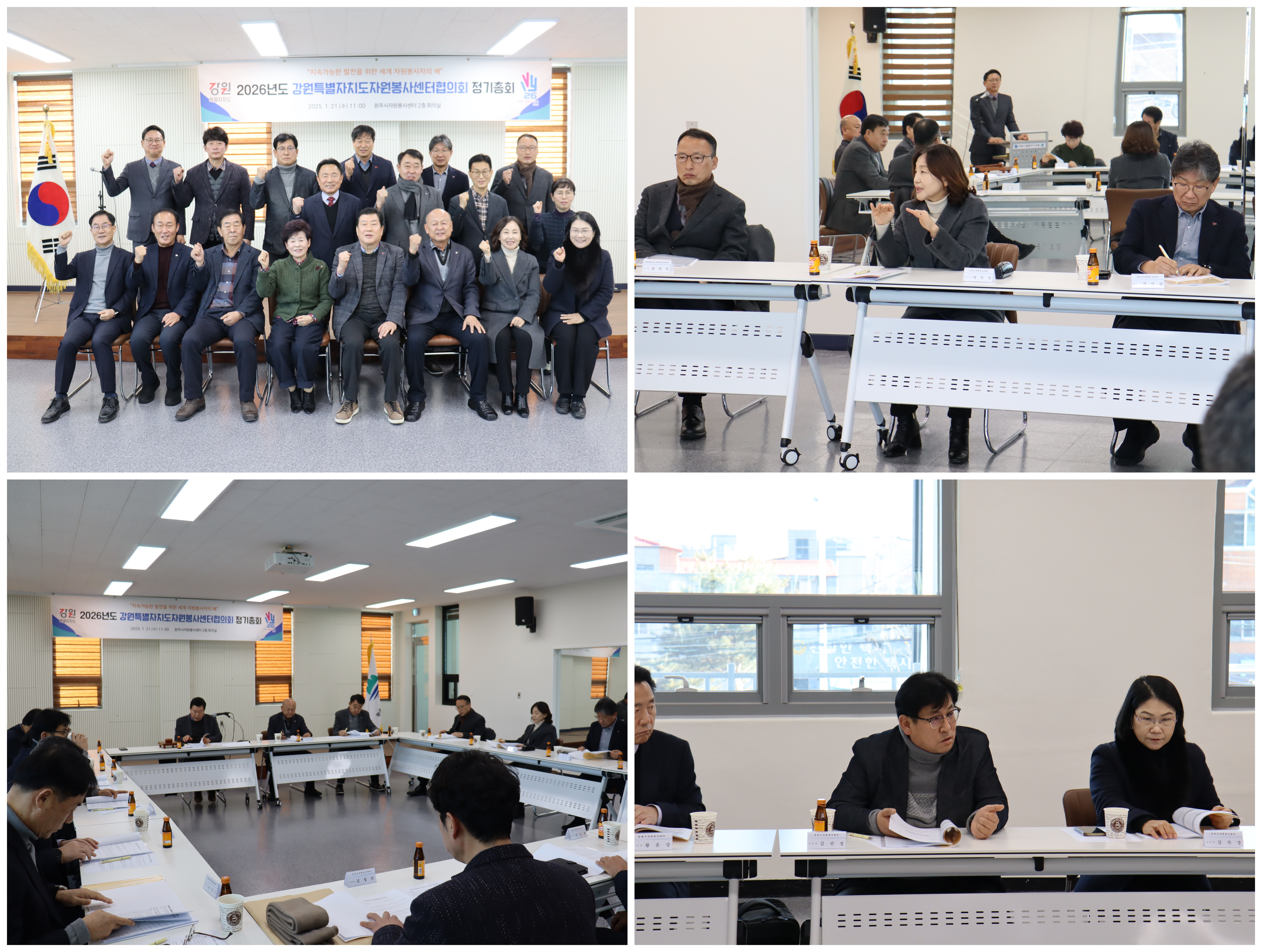 강원특별자치도자원봉사협의회(회장 장기봉)는 1월 21일(수) 원주시자원봉사센터 2층 회의실에서 도내 자원봉사자센터장 19명이 참석한 가운데 「2026년도 강원특별자치도자원봉사센터협의회 정기총회」를 개최하였다.