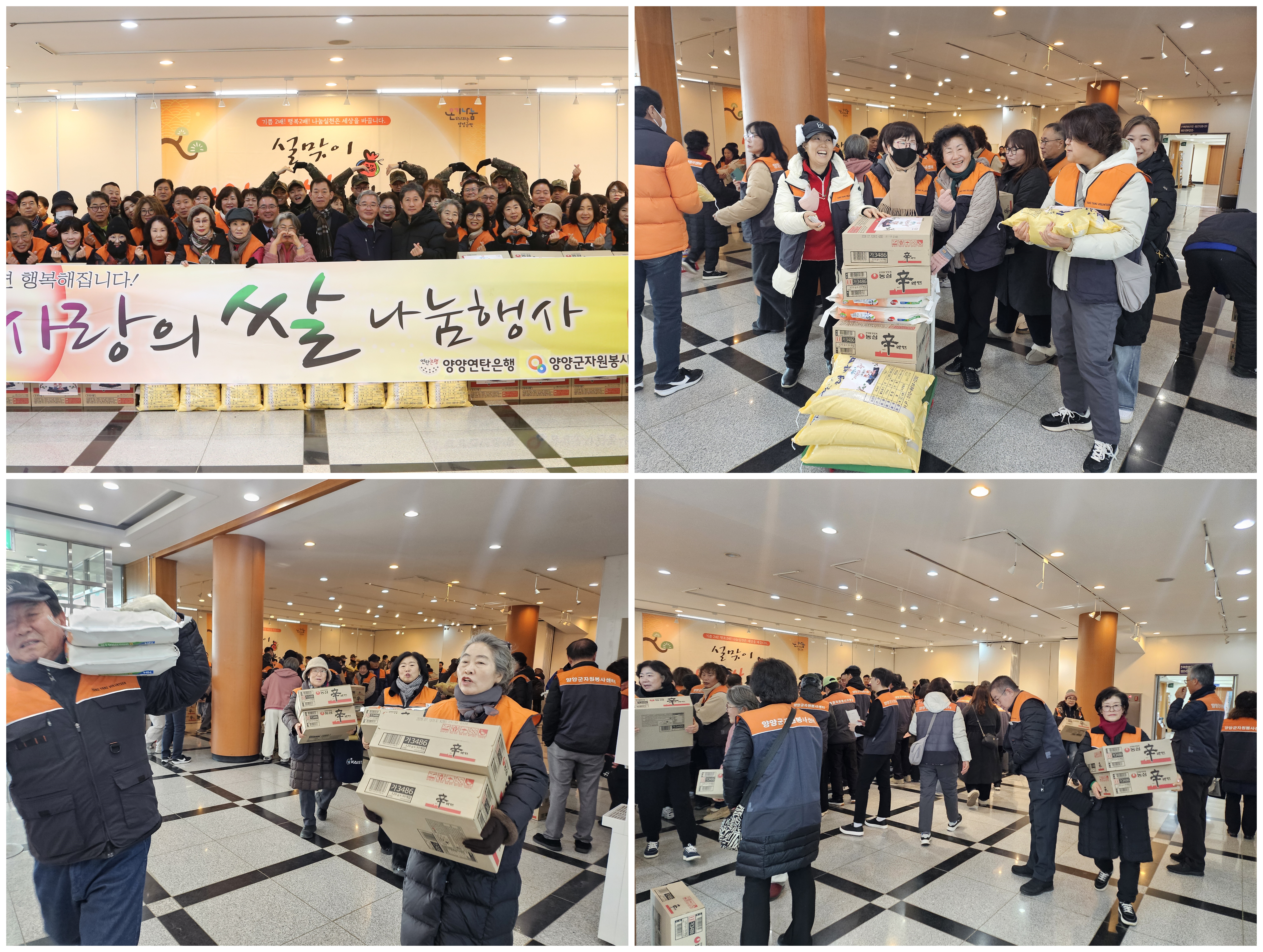 쌀 나눔은 지난 해 말 한국공항공사 양양공항에서 기탁 받은 쌀과 라면, 양양군보건소에서 기부받은 물품으로 마련하였으며, 양양자원봉사대 소속 봉사자 100여 명과 제1산악여단 3대대 장병들이 30일 오전부터 지역 저소득 94가구를 방문해 가구당 10kg의 쌀과 라면 1박스를 전달했다.